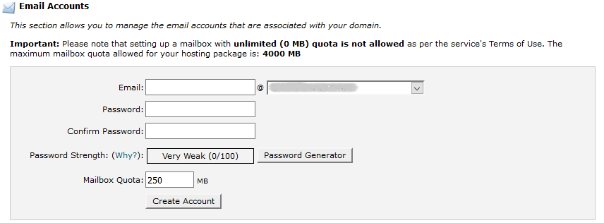 create an account with a user name and password for your domain.